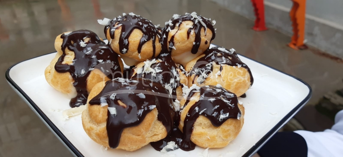Süt, şeker, un, yumurta bir tencereye ilave edilir Ve koyulaşana kadar çırpılır son olarak 1tatli kaşığı tereyağı ve 1 paket vanilin eklenip fırından çıkan profiterolün içine bir sıkma torbası yardımıyla sıkılır.